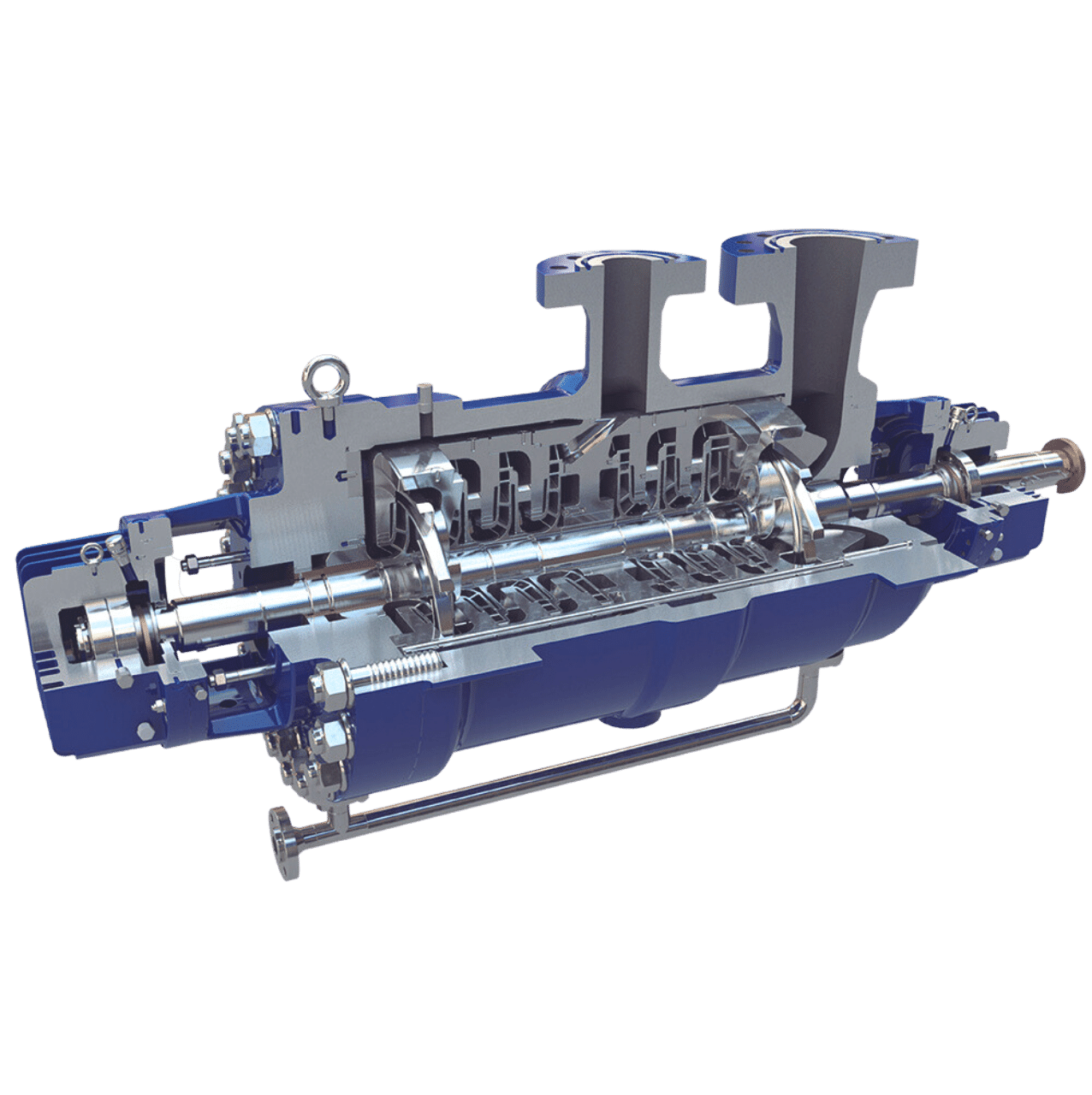 Our A-Line pumps are heavy-duty, horizontal, radially split, multistage diffuser type pumps engineered and manufactured to the latest edition of ISO 13709 and API 610 (BB5 type).