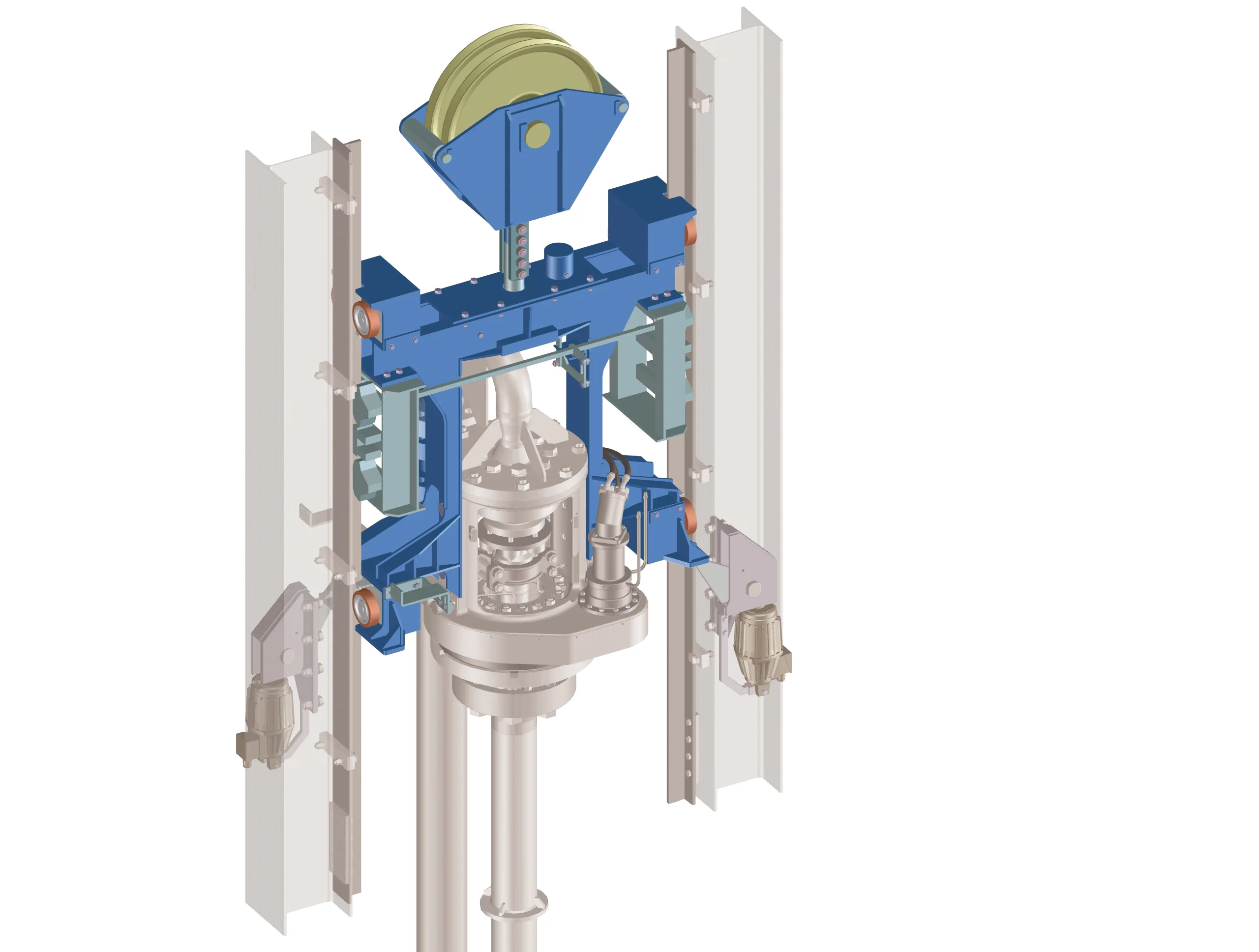 • With new wheeled crossheads incorporating Free Fall Arrestor and actuation linkage, the crosshead can be modified for either existing rotary joints or Ruhrpumpen’s Drill Stem Drives