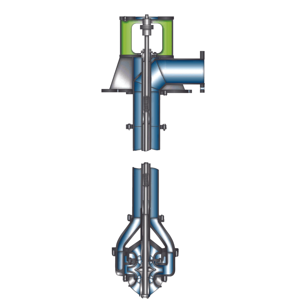 The type DSV is a heavy-duty, vertical double suction, twin volute, single stage centrifugal design. The DSV pump has good NPSH characteristics and is ideal for open sumps, channels, lakes and rivers.